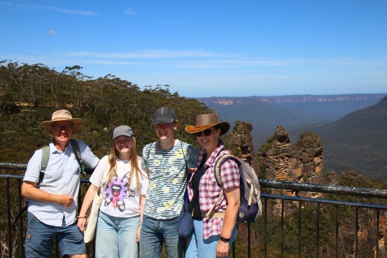 Vandaag gaan we de bergen in. Nou ja, kijken bij de Blue Mountains, 2 uur ten westen van Sydney. Op tijd op om de trein te halen, die gaat 1x per uur. Extra pechje: deel vh spoor ligt eruit, dat…