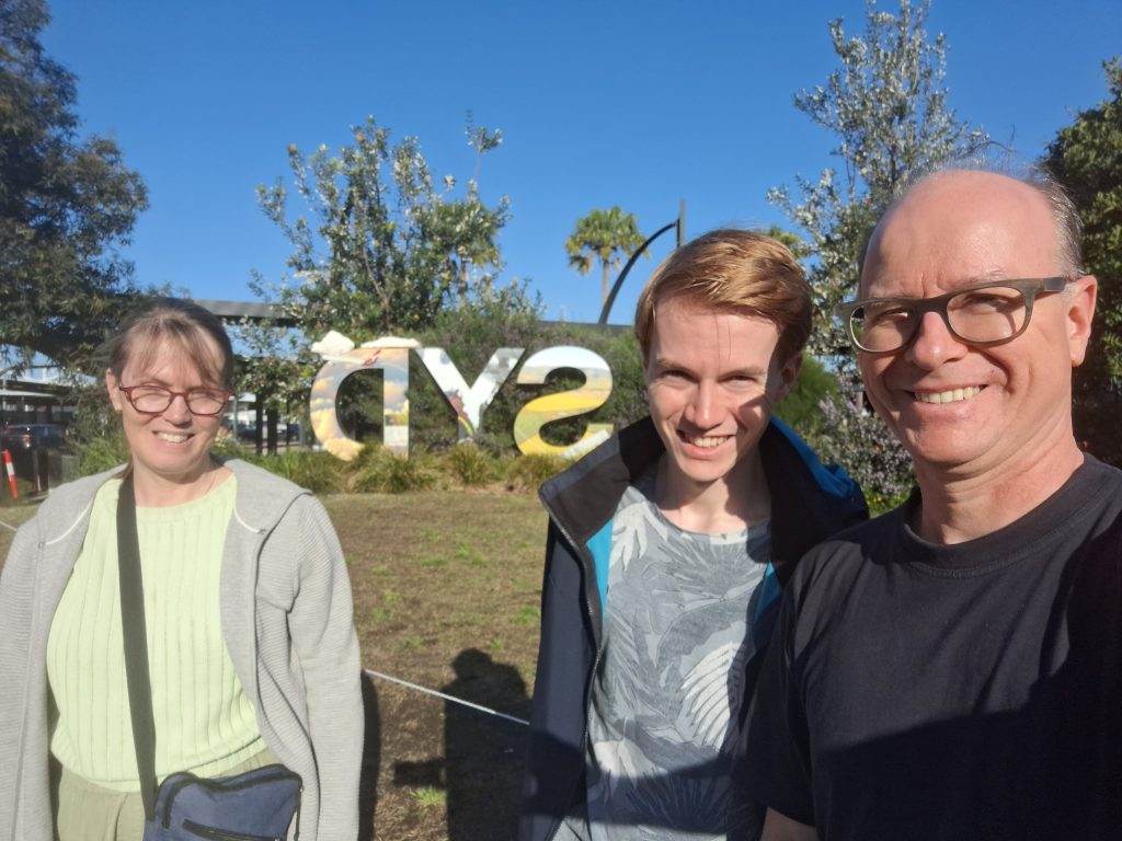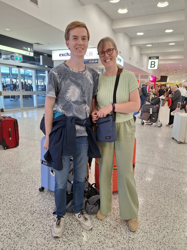 Dan door de douane en immigratie, we vreesden het ergste want AU heeft hele strenge wetten voor eten etc. het land inbrengen. Adinda had in het vliegtuig nog een vraag gesteld over het aangifteformulier en kreeg prompt twee handen vol met chips, kitkats etc. Die moesten nog wel door de douane nu. Uiteindelijk bleek de hele immi/customs opzet wat klungelig en niet zo lean te zijn. Na een paar vragen over medicijnen en onze tas lekkers mochten we door.