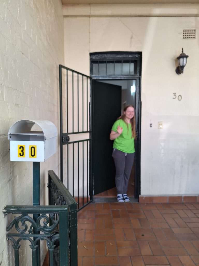 Om 9 uur stonden we in het hotel om onze koffers af te geven. Toen langs Carmen, in de wijk Chippendale.