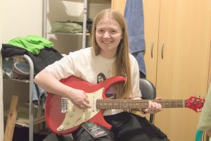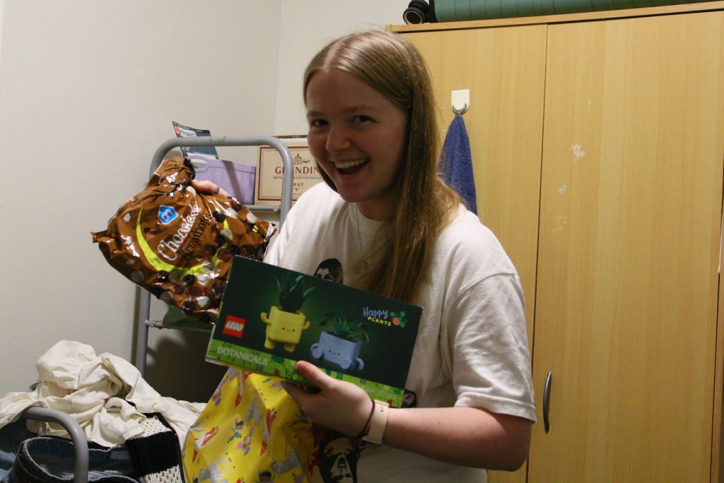 Naar Carmen’s kamer, klein maar fijn. Presentjes geven: lego bloemen en pepernoten (customs approved).