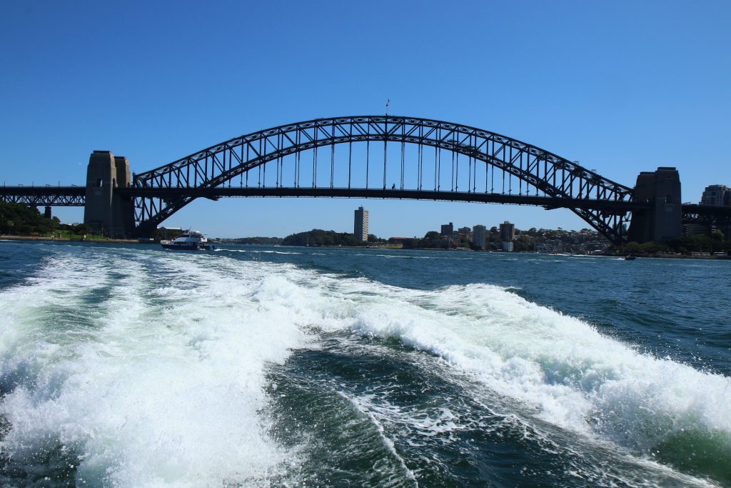Varen langs Opera House en Harbour bridge, dan gas erop naar Manly Beach, hij vaart snel!