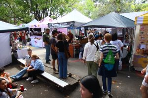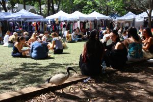 ’s Ochtends naar de zaterdagmarkt in Glebe geweest. ’t Is een paar blokken van Carmen vandaan. Kleding, snuisterijtjes en eten uit de hele wereld. We hadden nog niet ontbeten (hotel deed geen ontbijt meer sinds kort), dus dat kwam goed uit. Leuke wijk, met dezelfde soort terrace house als Carmen.
