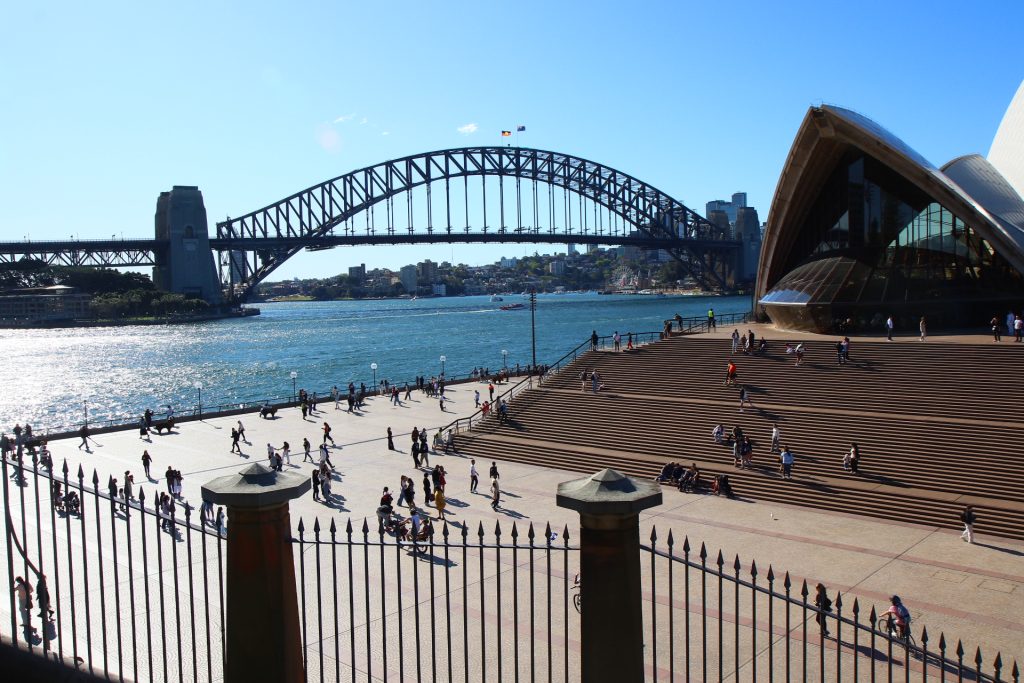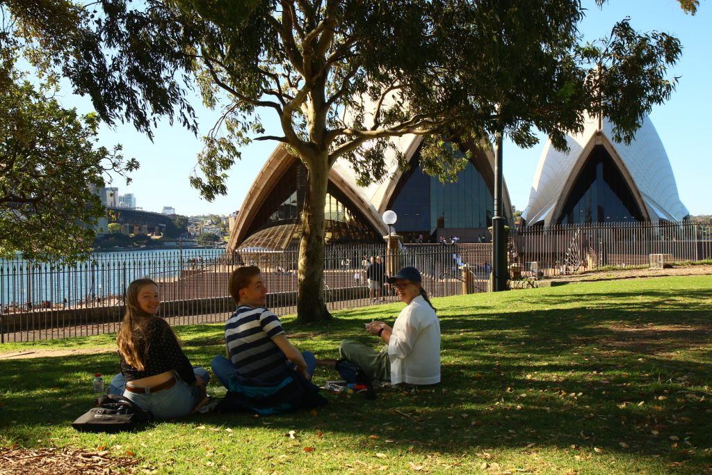 Lunch in het gras tegenover Opera House. En al weer een bruidspaar op de trappen. En nog 3 in de botanische tuin hierna! Prachtplek.