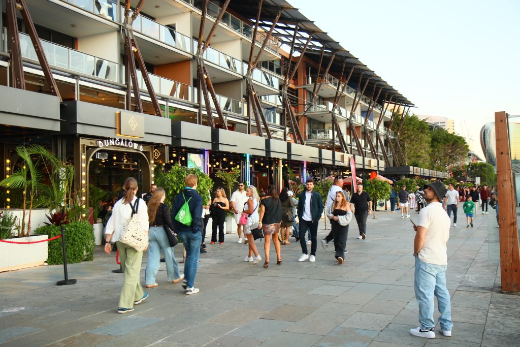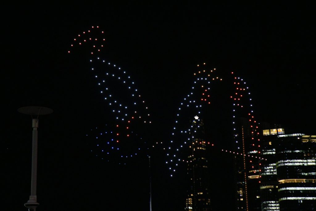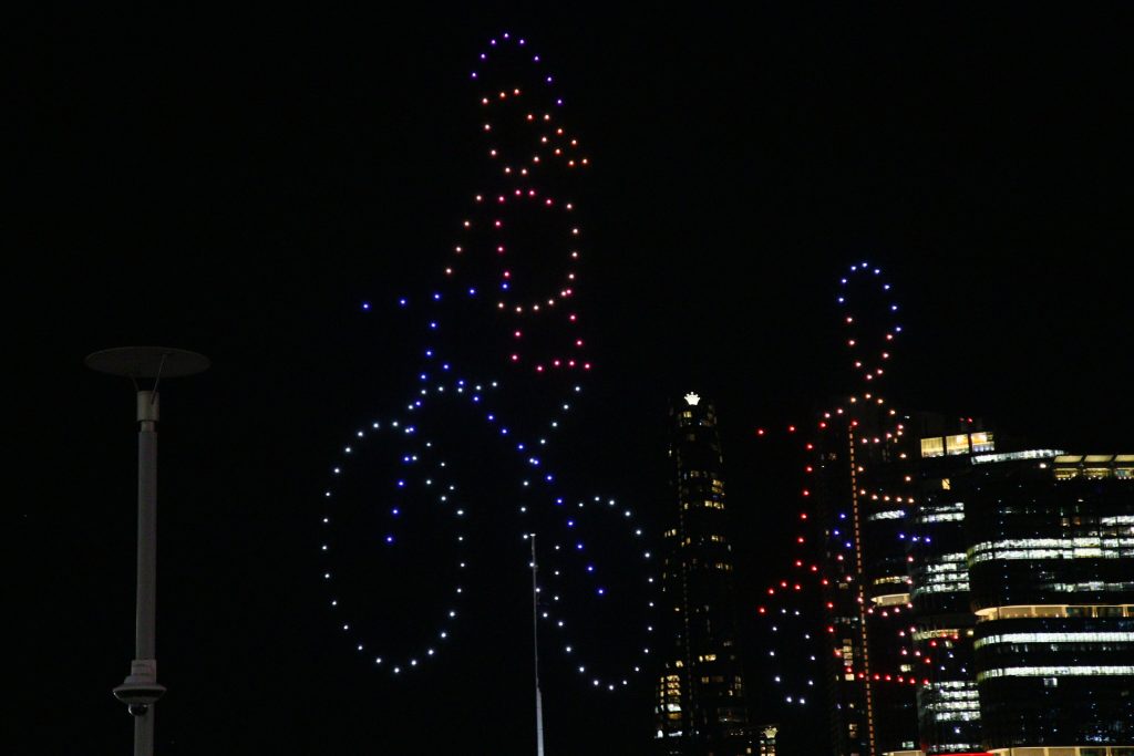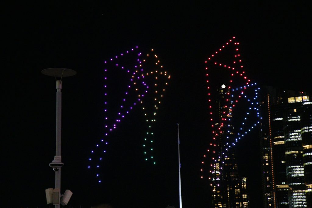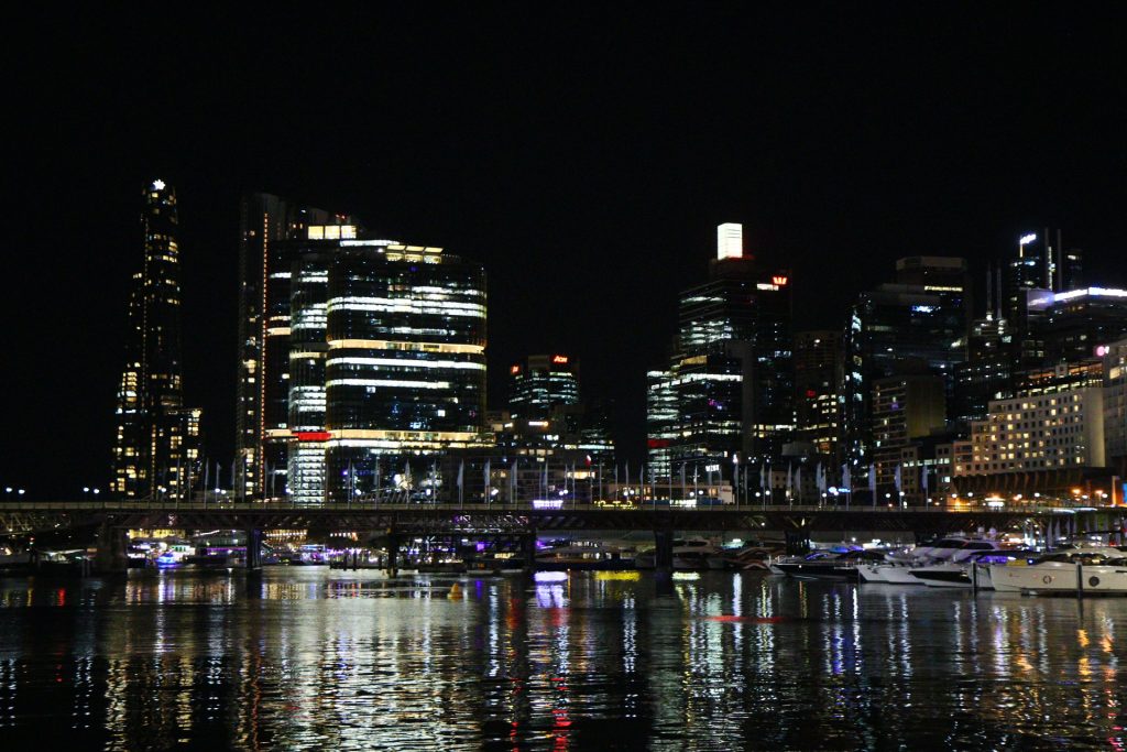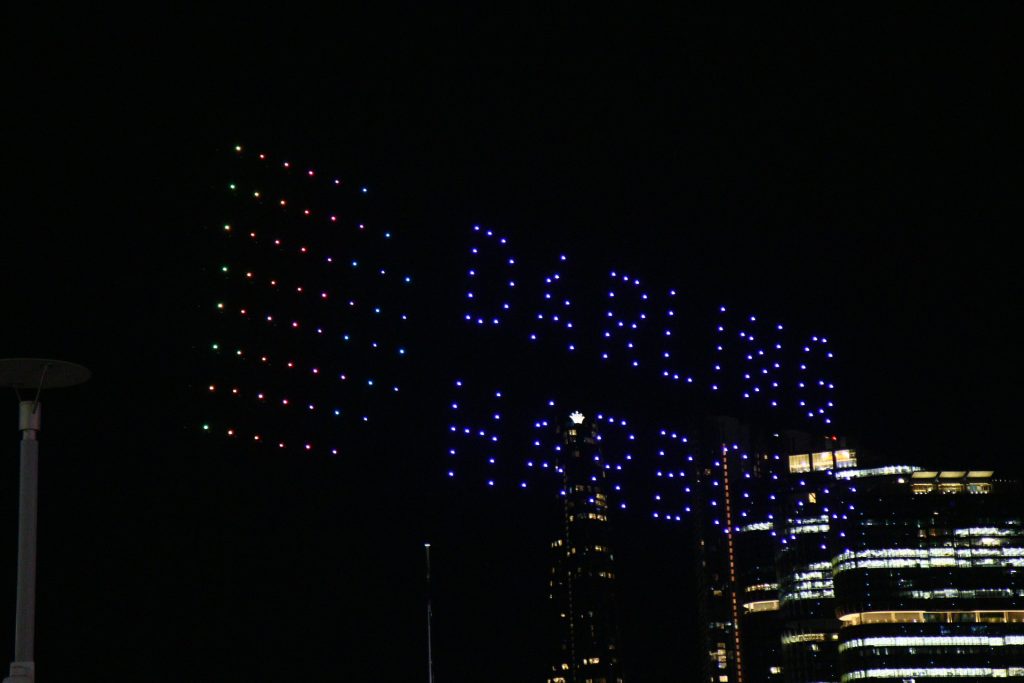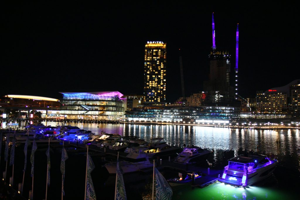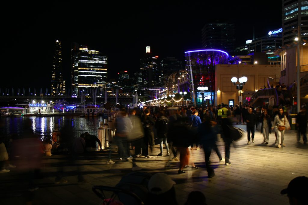 Bij Darling Harbour gegeten, en gewacht op de drone show, die een uur later bleek te beginnen. Drukte van belang op de kade, honderden die ook graag de wekelijkse show willen bekijken.