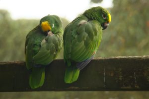 Een klein vogelpark bekeken. Allemaal prachtige vogels uit de regio, sommige handtam. Of ze gaan op je hoofd zitten.