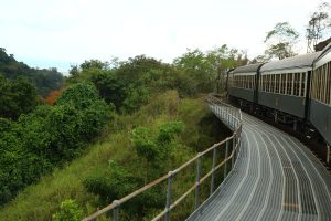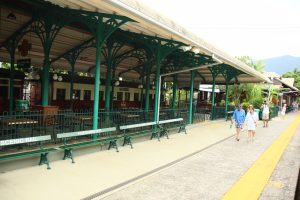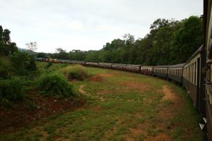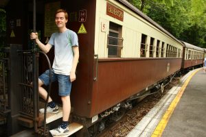 Toen weer terug, met een historische trein. Op een gangetje van 30 km/u ging de trein twee uur lang over bruggen, door tunnels in de bergen.