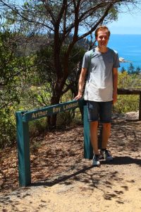 Daarna liepen we terug naar het beginpunt, en kwamen langs Arthur Bay, de mooiste baai van allemaal! Ons water is inmiddels op, half litertje niet genoeg, volgende keer een liter de man mee. Je kan hier uren lopen en bijna niemand tegenkomen.