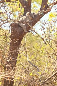 Na een half uur lopen kregen we een koala-tip van een wandelend stel, ook Nederlanders toevallig. Na 10 min. zoeken in het bos zagen we het fijne dier. Hij was duidelijk in de relaxstand, maar misschien is het z’n normale doen (koala’s slapen 20 uur per dag). Prachtig om te zien. Hij trok zich van ons niks aan, daar 3 meter hoger in de boom. Koala’s eten eucalyptus en dat groeit hier flink. Koala-weetje: hij drinkt nooit, haalt al z’n vocht uit de bladeren die hij eet. Is het geen cutie?
