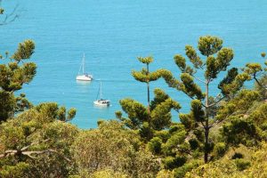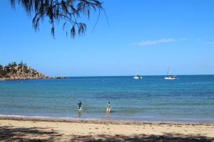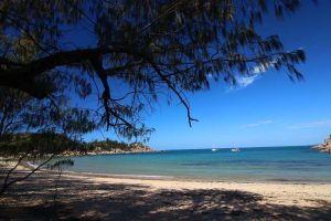 Aan het eind van het bergpad kwamen we uit bij Florence Bay. Een baai met prachtig strand, waar we er natuurlijk even in doken. Het water direct aan de kust was zelfs lekker warm.