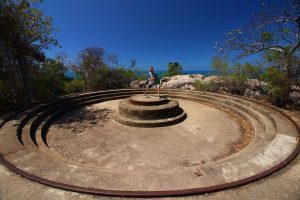 Het fort waren diverse betonnen gebouwtjes op de top van de berg. Heel strategisch gelegen, bijna 360 graden zicht rondom. Was natuurlijk om Japanners te spotten, na de bombardementen op Australië in 1942. Hier stond een kanon.