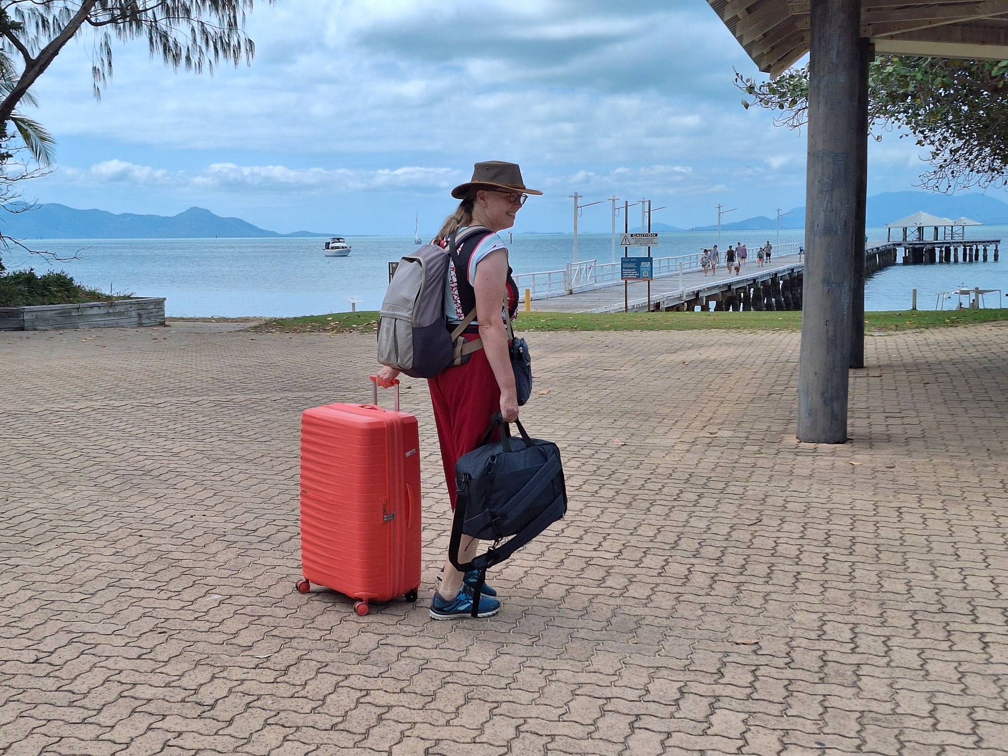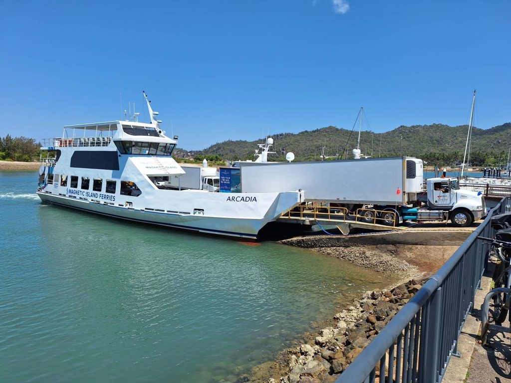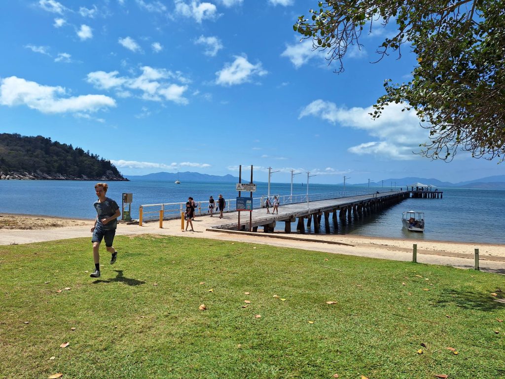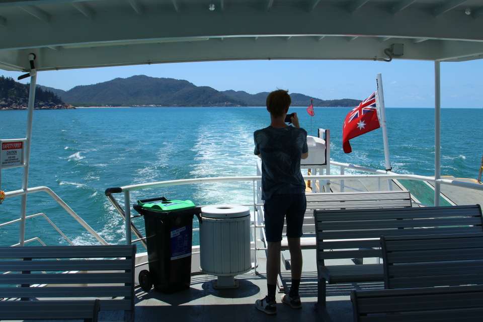 We gaan weer van het eiland af, op weg naar Airlie Beach 400 km zuidelijker (een klein stukje, voor Australische begrippen). Bij de ferry terminal op het vasteland de auto weer opgezocht, die mocht niet de ferry op van de autoverhuurder.