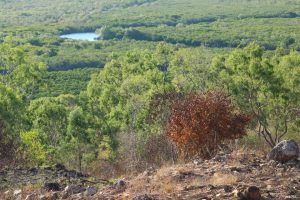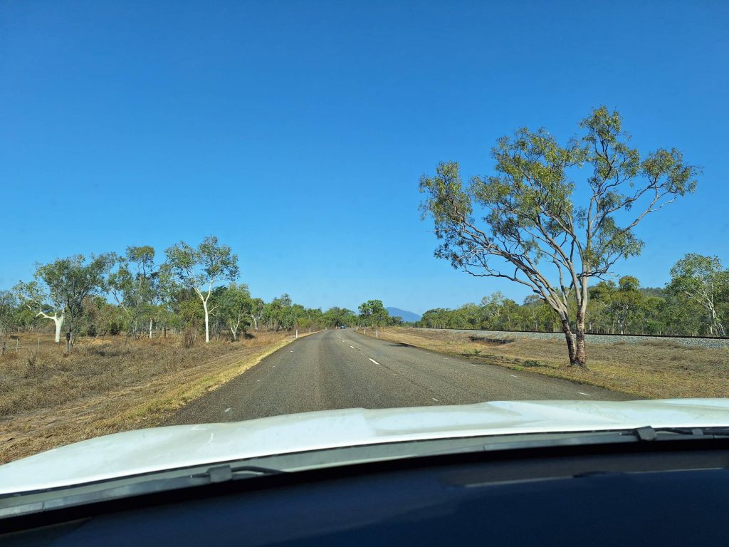 Langs A1 Bruce Highway naar beneden gezakt. Het valt meteen op hoeveel droger het hier overal is vergeleken met het eiland. Op veel plekken is het ook zwartgeblakerd door brand.