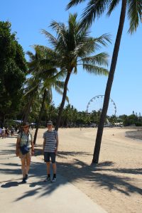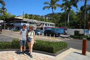 Het weer is (alweer) 27 C, zonnig, en de UV extreem. Vandaag in Airlie Beach kijken. Lopend heen, hoewel het verder was dan we dachten; we zitten in het buurdorpje in een soort huisjespark, en de Australische stadjes zijn toch meer op auto’s ingericht.