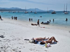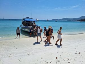 Vandaag met de boot naar Whitsunday Islands, een groepje eilanden voor de kust van Airlie Beach.
