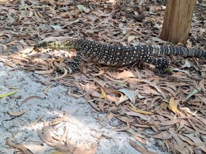 O, naast het strand loopt ook nog dit, metertje of anderhalf. Een Goanna, of ook Australian Monitor Lizard.