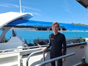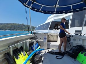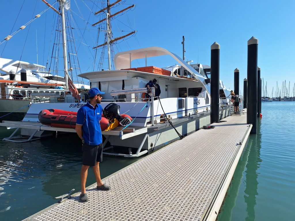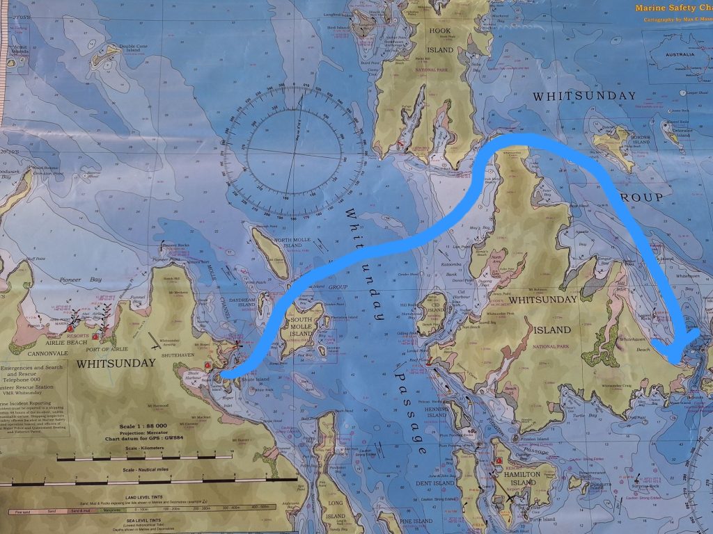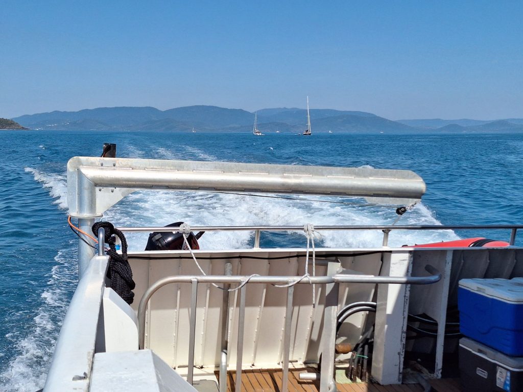 We zien elkaar weer terug op de boot, die in 1.5 uur weer terugvaart naar de haven van Airlie Beach.