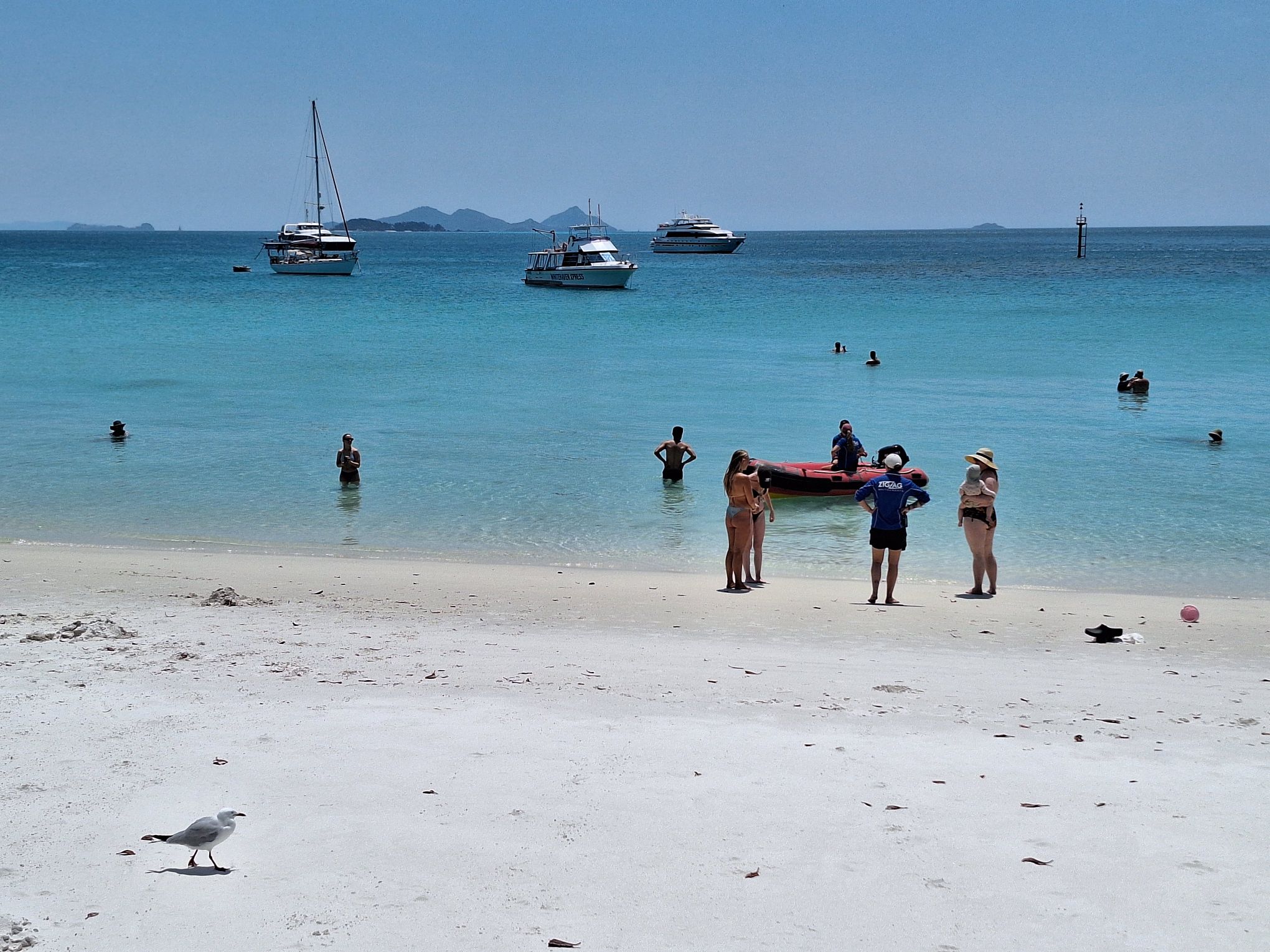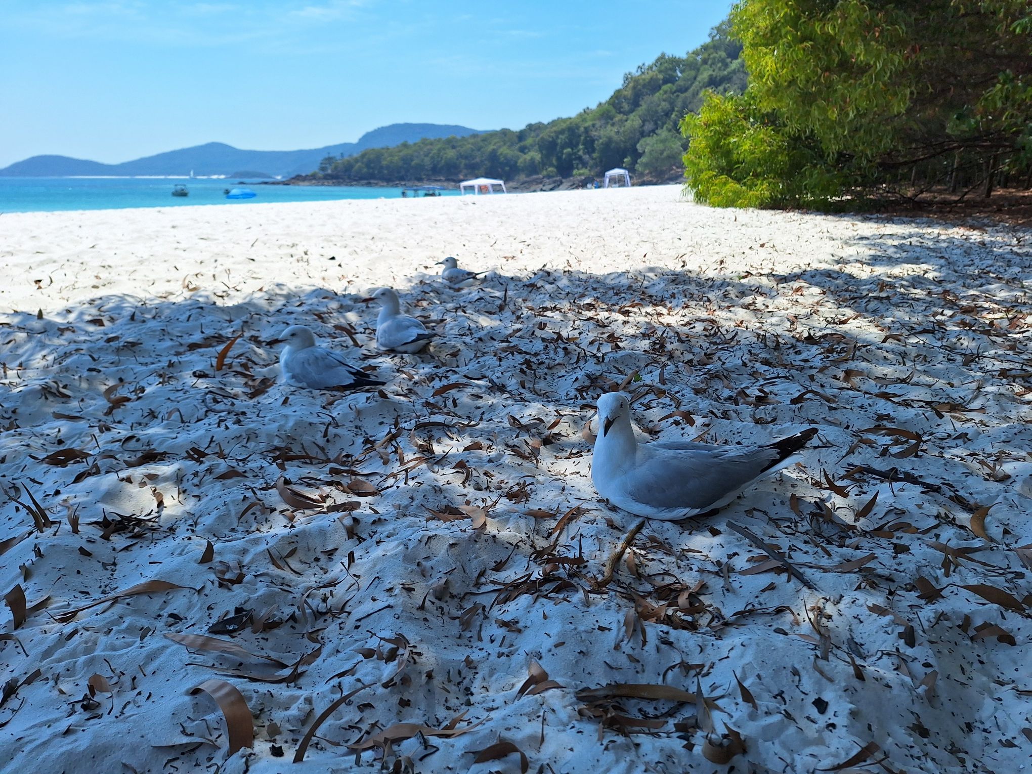 Vandaag met de boot naar Whitsunday Islands, een groepje eilanden voor de kust van Airlie Beach.