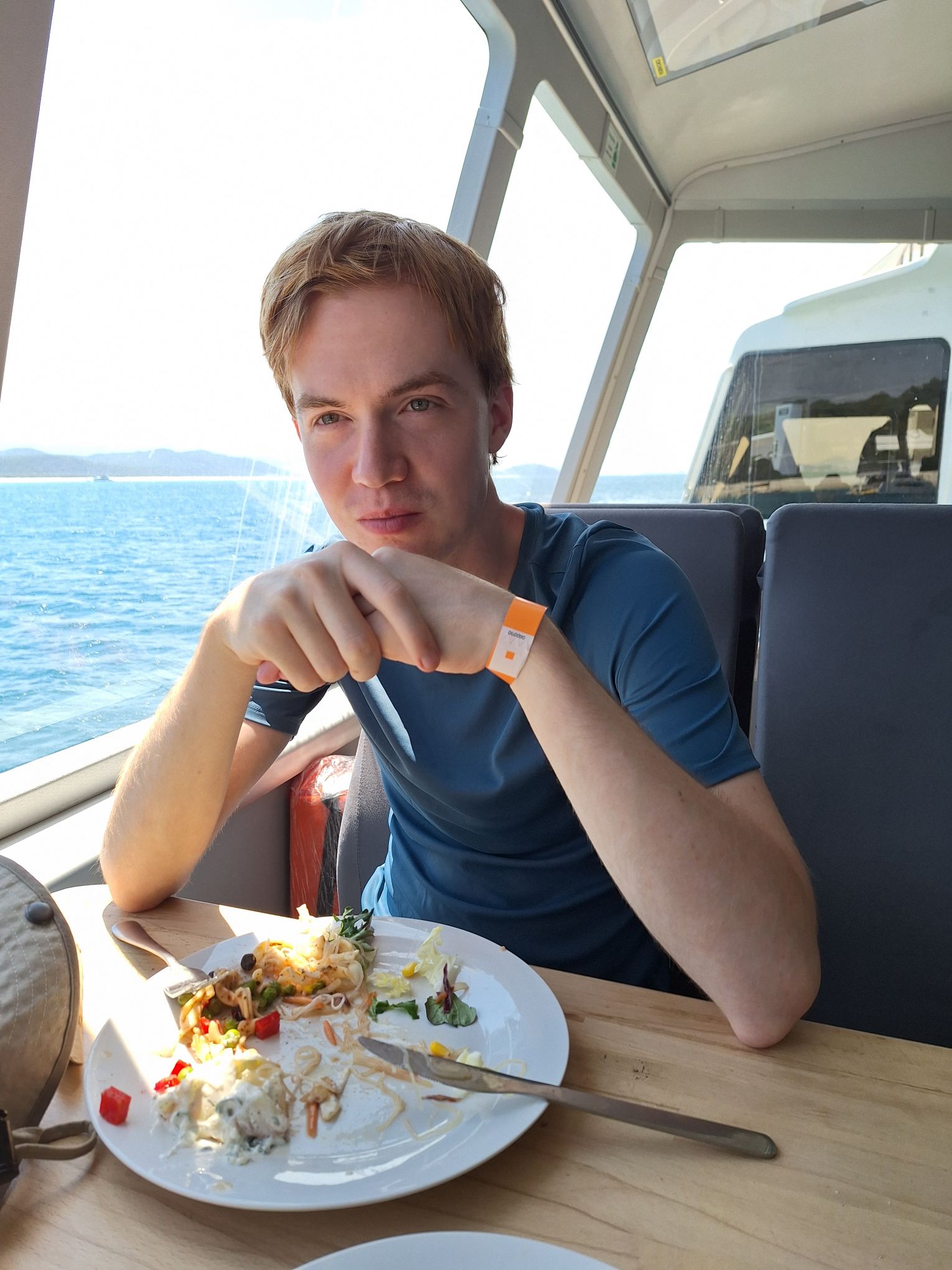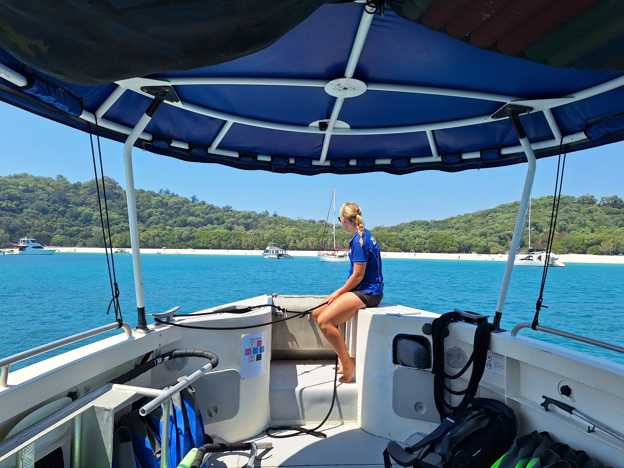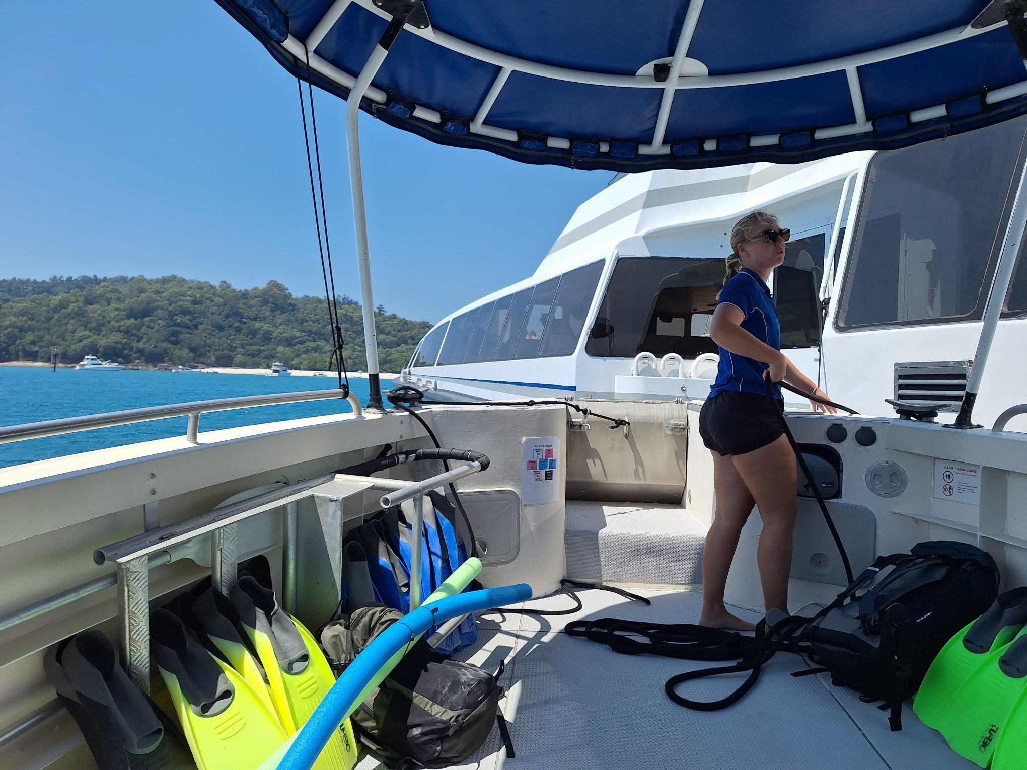 We zien elkaar weer terug op de boot, die in 1.5 uur weer terugvaart naar de haven van Airlie Beach.