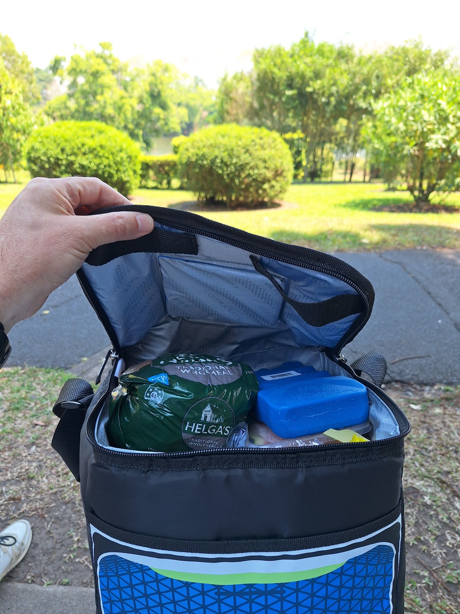 Tussenstopje bij de botanische tuin in McKay. Heel mooi aangelegd, aan de rivier, goede lunchplek, met onze nieuwe aanwinst: een opvouwbaar koeltasje.
