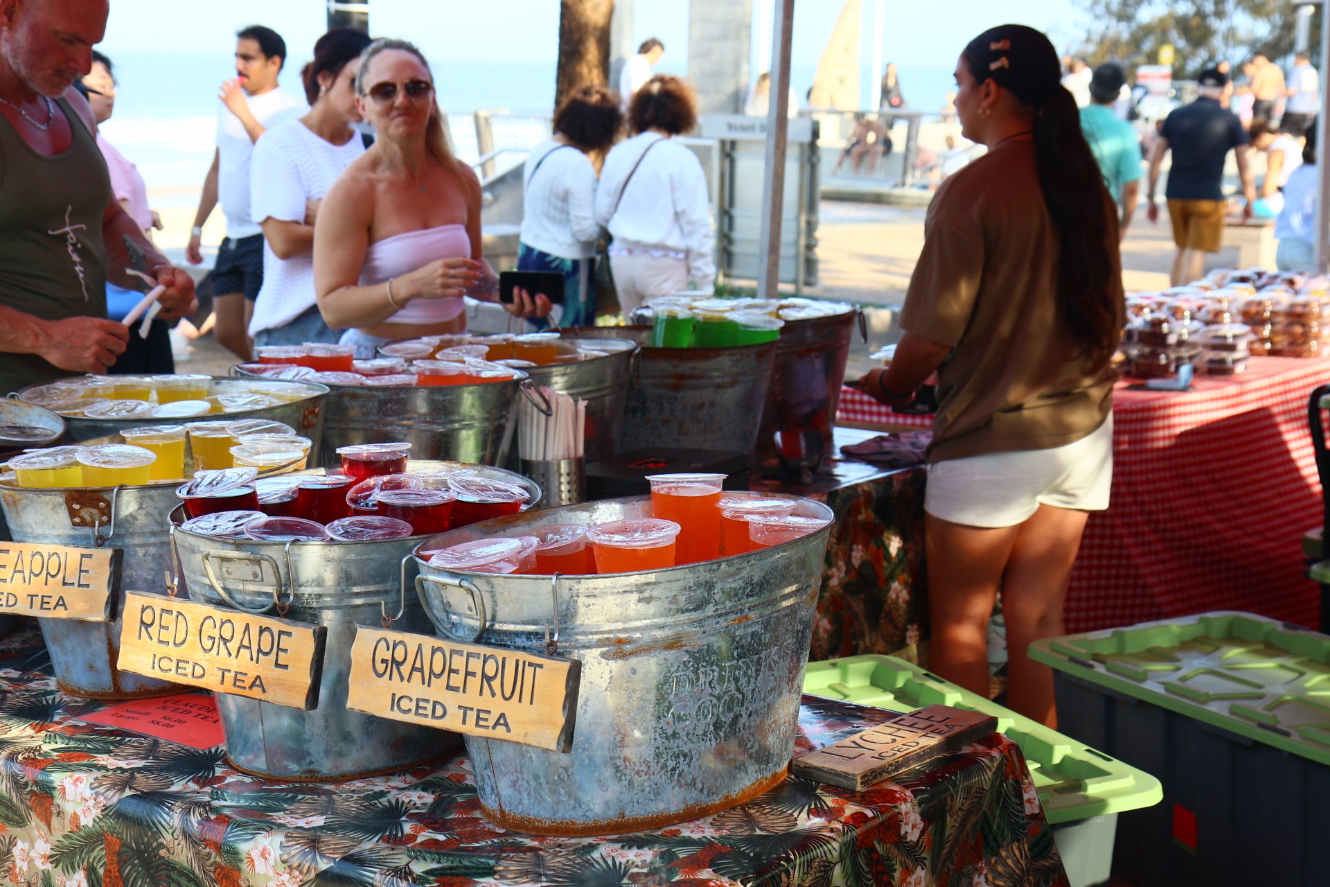 Langs een marktje aan de Esplanade, die is hier om de dag.