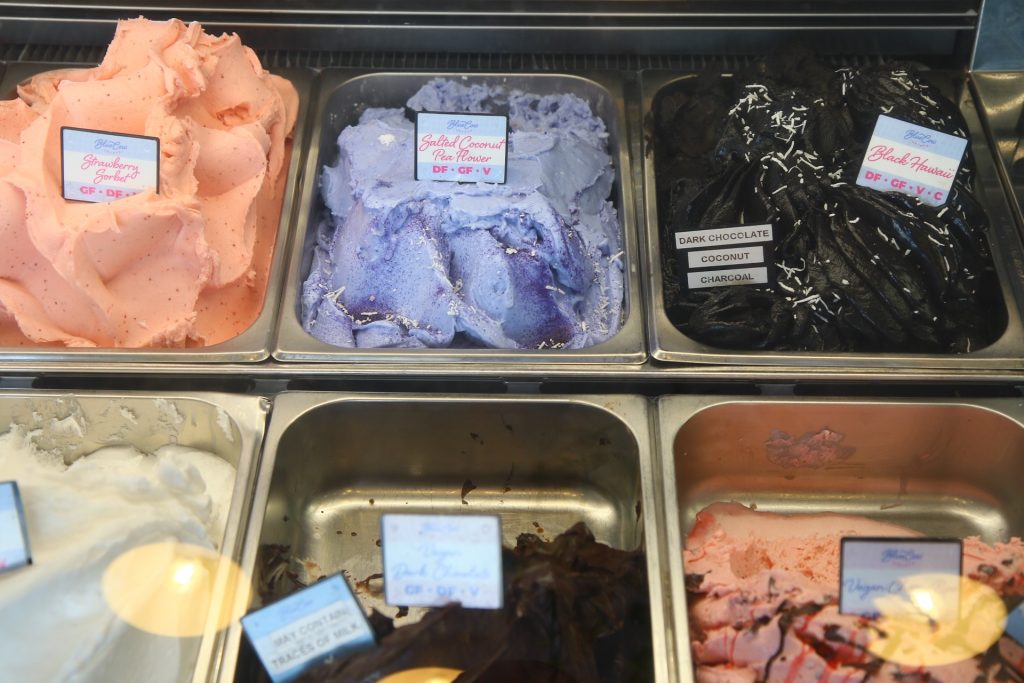 ’s Middags naar het stadje Byron Bay. Vroeger een hippiedorpje, nu het gros standaard commercieel winkelstraat-werk. Nog niet geketend aan de ketens, zoals in Nederland, en nog steeds zie je veel organische en esoterische winkeltjes, aboriginal souvenirs als boemerangs, clap stick en didgeridoo, en surf- en bikinizaken. Ja, en er loopt ook veel jeugd in bikini of blote bast rond. ‘No shirt, no shoes, no service’ geldt hier niet. En veel fatbikes en stepjes hier die tussen de voetgangers door crossen (er zijn hier nauwelijks fietspaden in Australië).