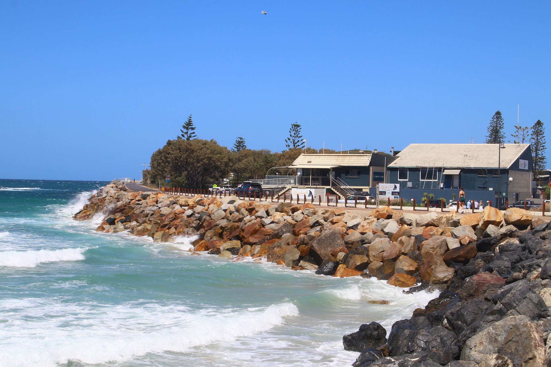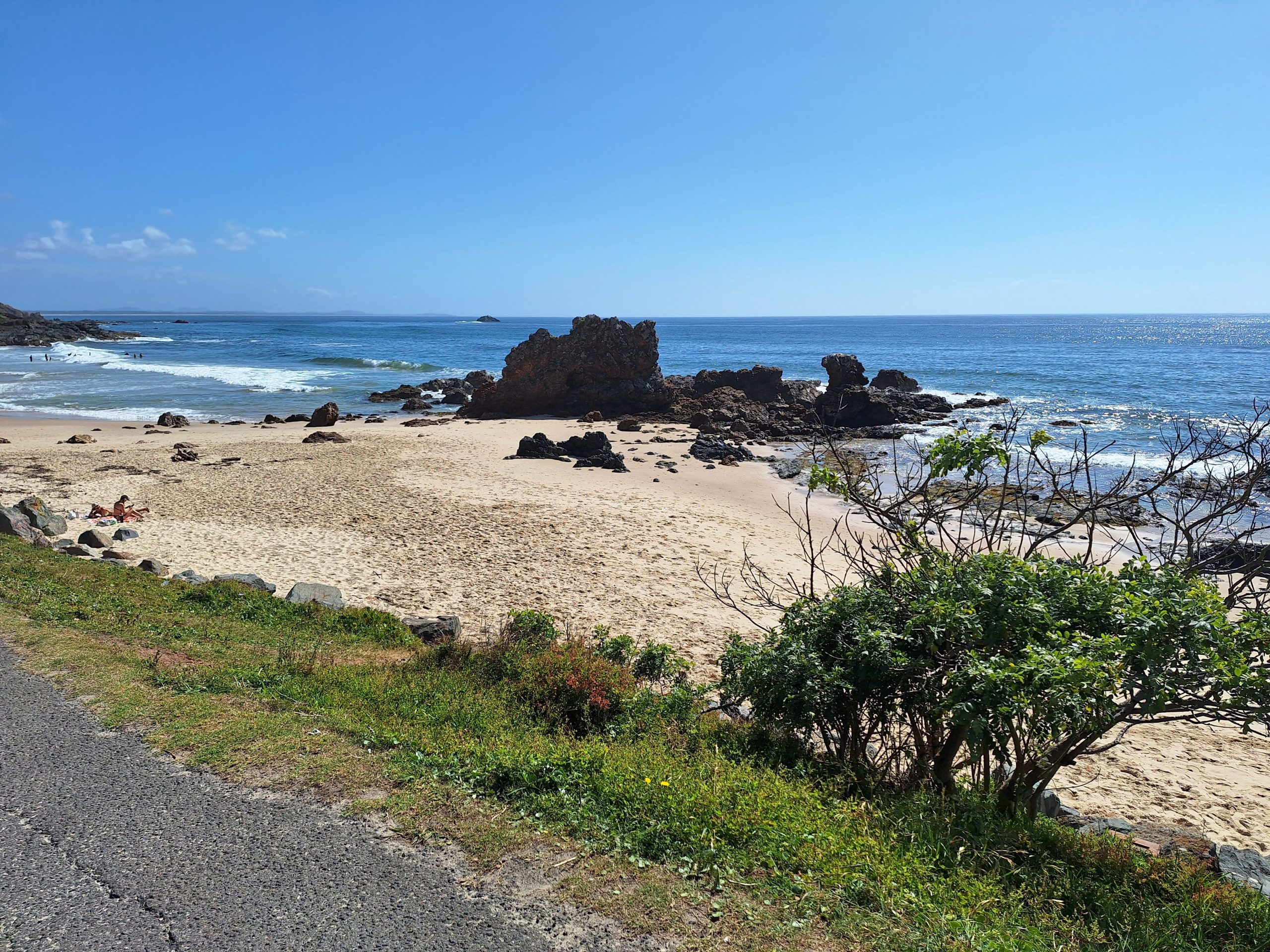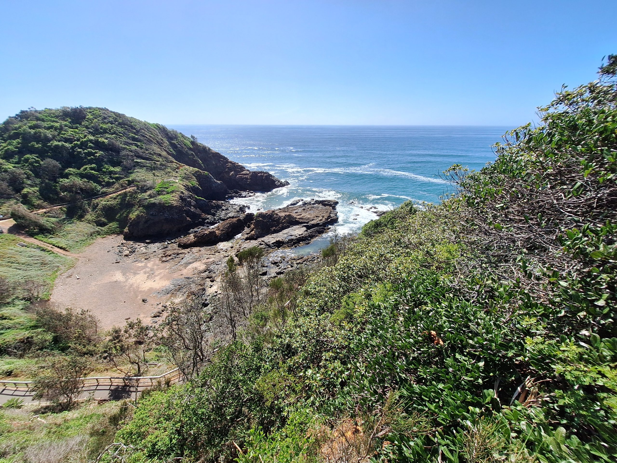 ’s Ochtends nog even rondgekeken in Port Macquarie, mooie kustlijn, weer mooie stranden. En een walvis ver weg in de zee.