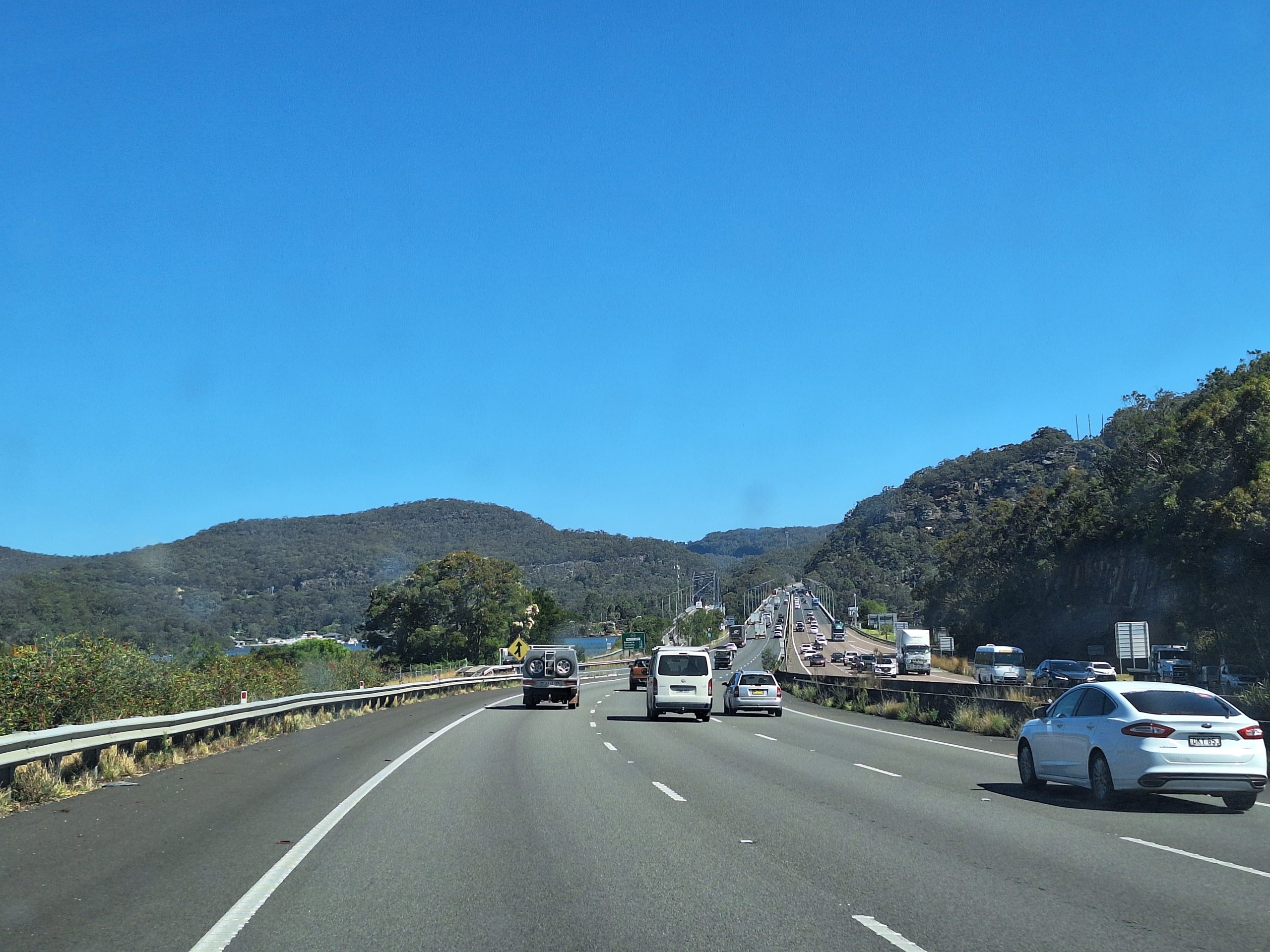 Op de Harbour Bridge was het volgens de website rustig. En bij aankomst was het inderdaad rustig, rustig rijden wel te verstaan met 10-20 km/u. Mm, dat schiet op. Wel een mooie brug, van de buitenkant tenminste!