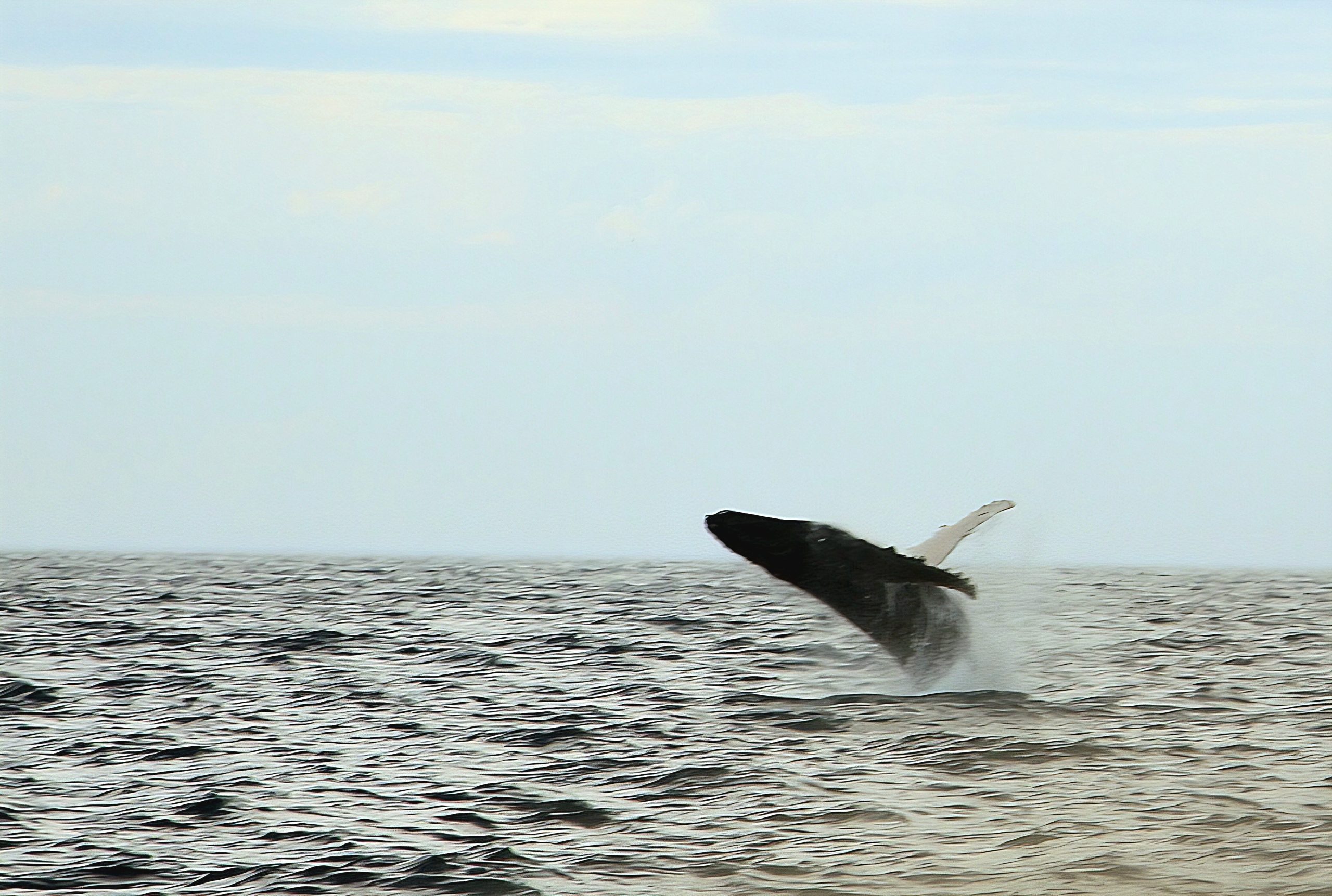 Het mooist is natuurlijk een klein sprongetje uit het water. Maar dat kunstje doen ze niet elk minuut. Blijkbaar maken de mannetjes hiermee indruk op de vrouwtjes, maar het kost wel veel energie om zo’n 25 ton zwaar lijf omhoog te krijgen.