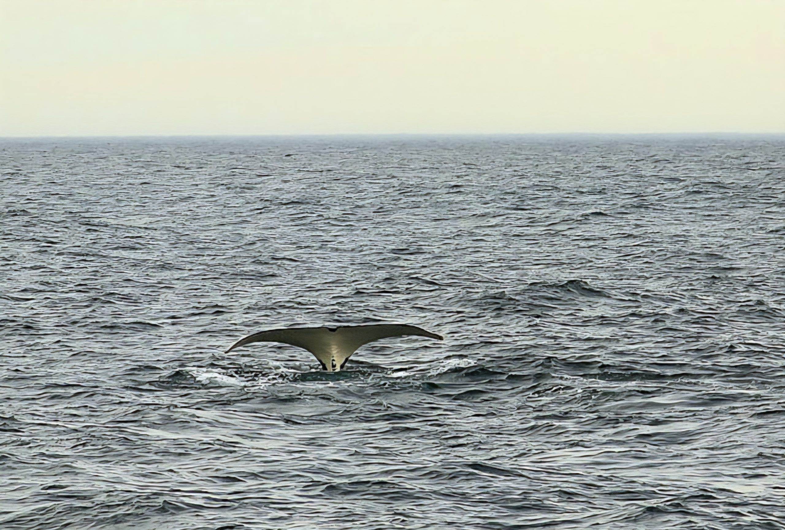 Fantastisch gezicht. Op een andere plek nog meer walvissen. Met de laatste zwieper van de staart nemen we afscheid van de dieren en varen we terug.