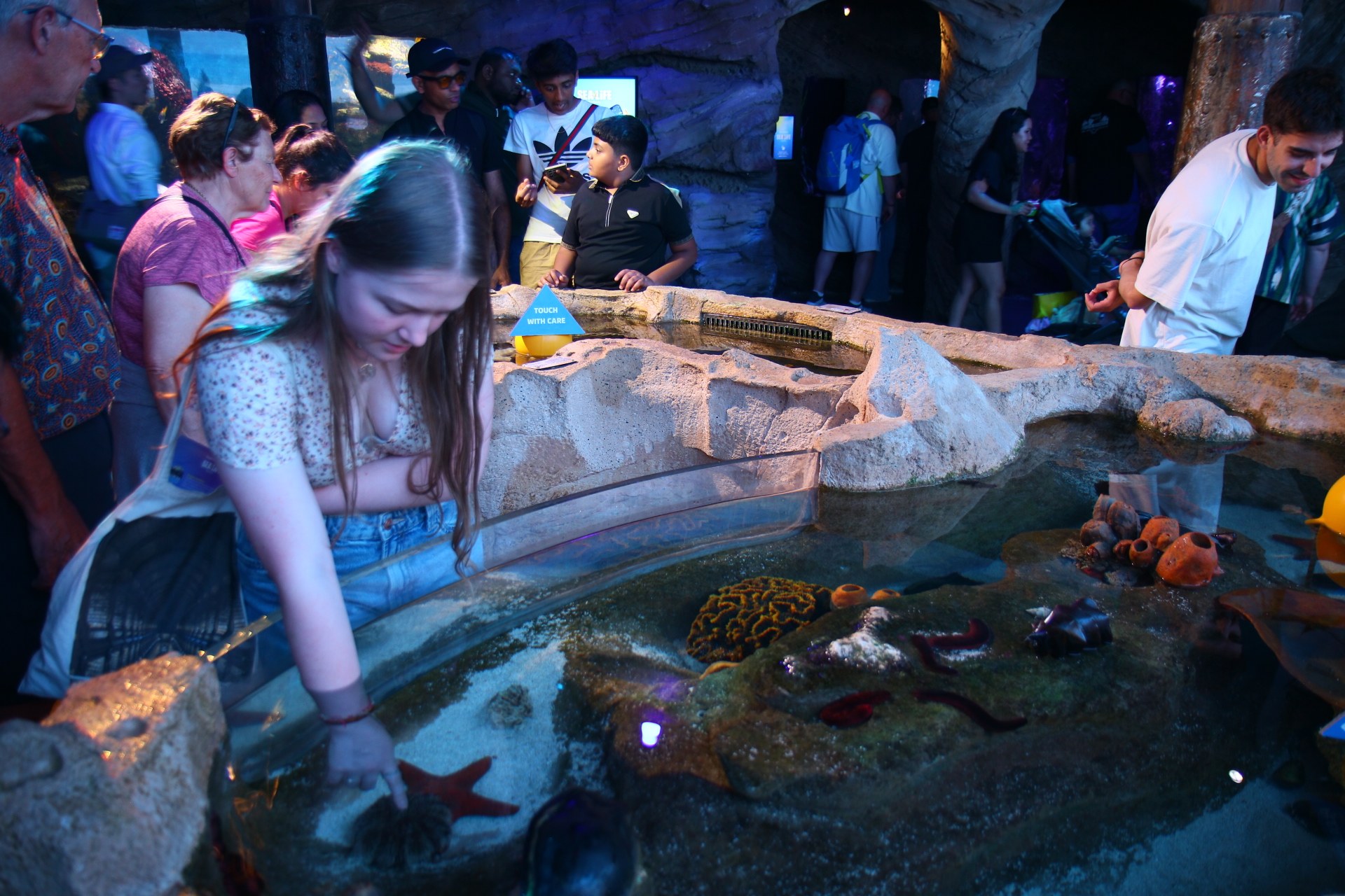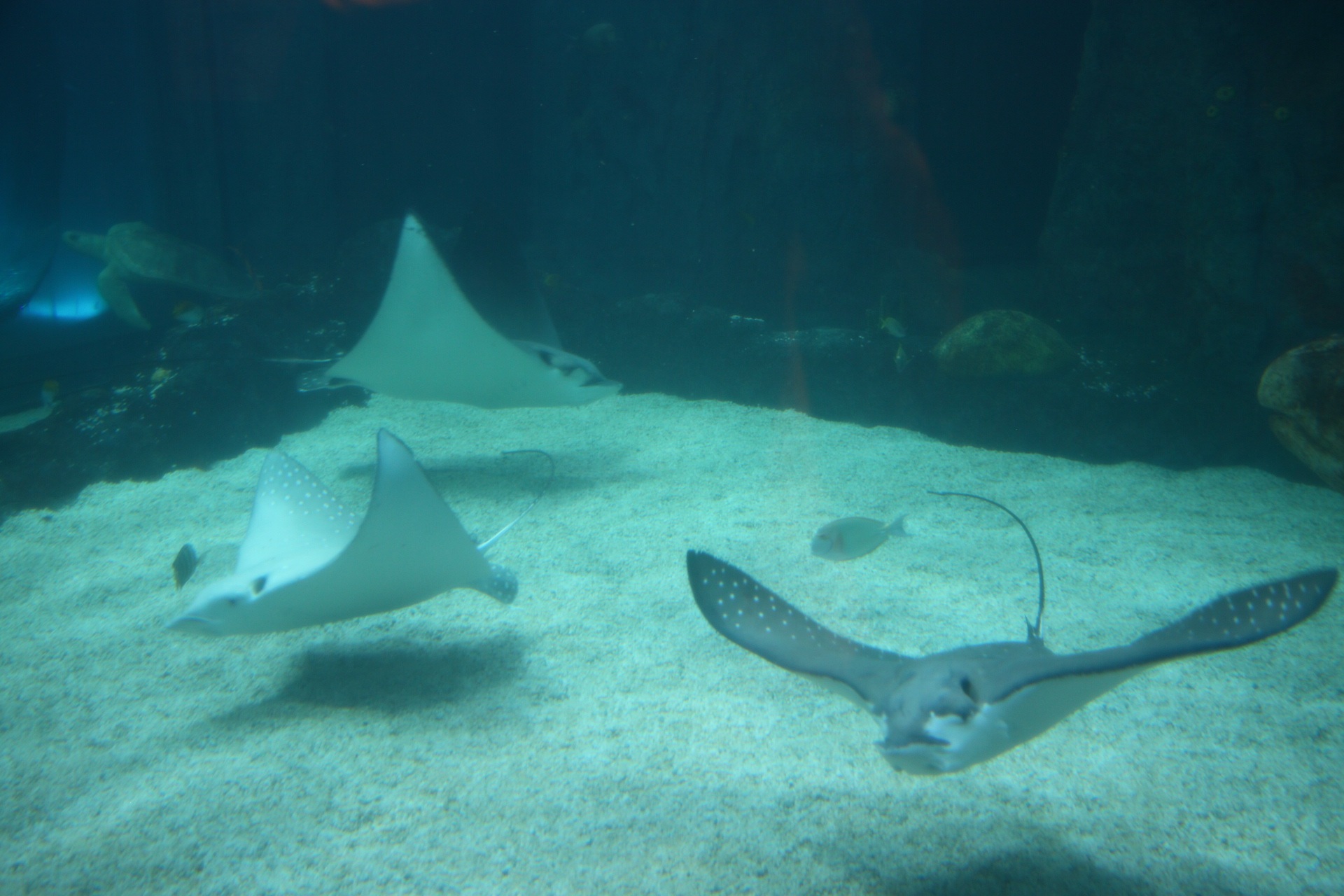 Er is te veel om op te noemen: tropische vissen en koraal, zoals we ook op het Rif hebben gezien, zeekoeien, haaien, pinguins, kwallen, manta rays, zeeschildpadden. Alles wat in en rond Australië leeft is hier verzameld.