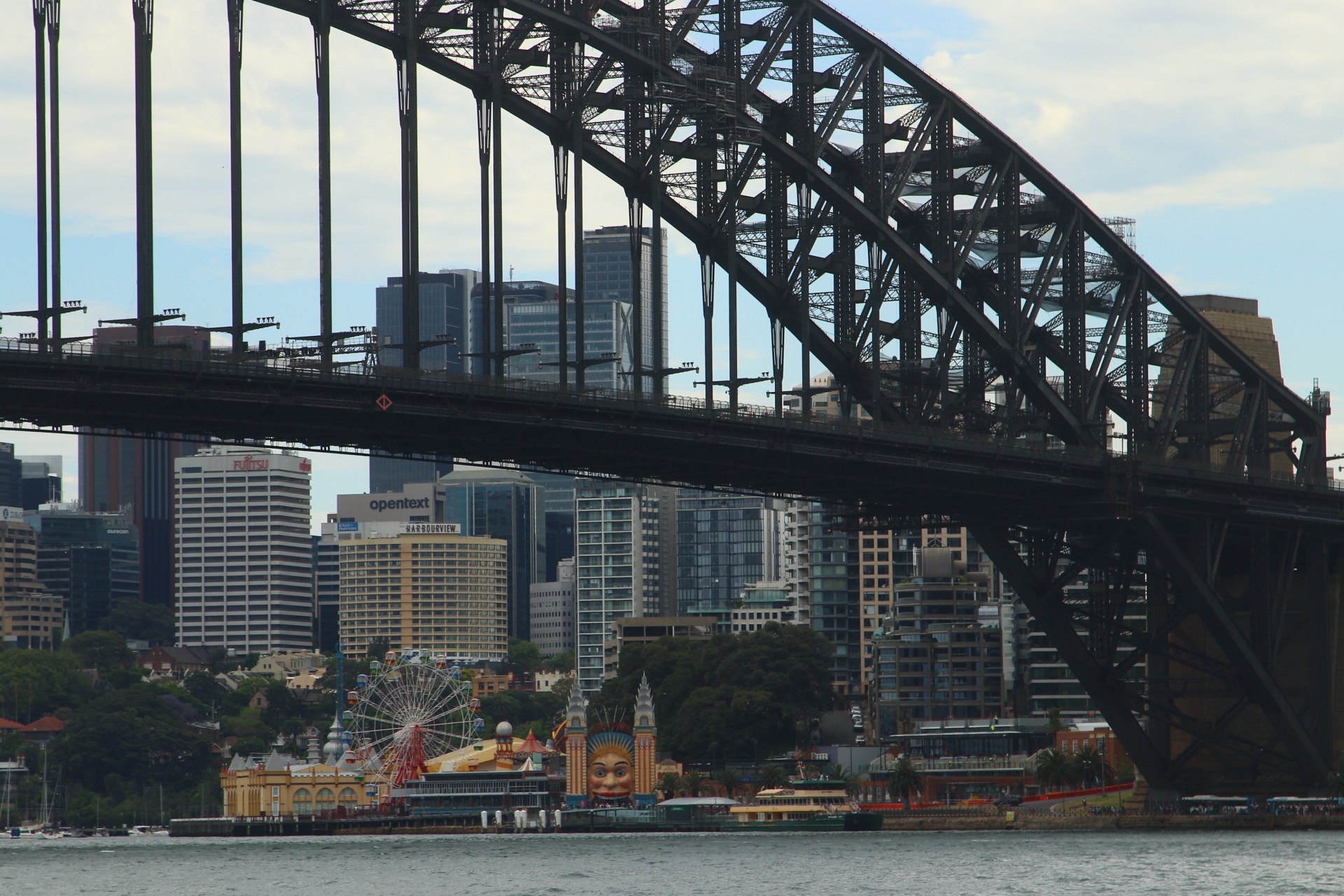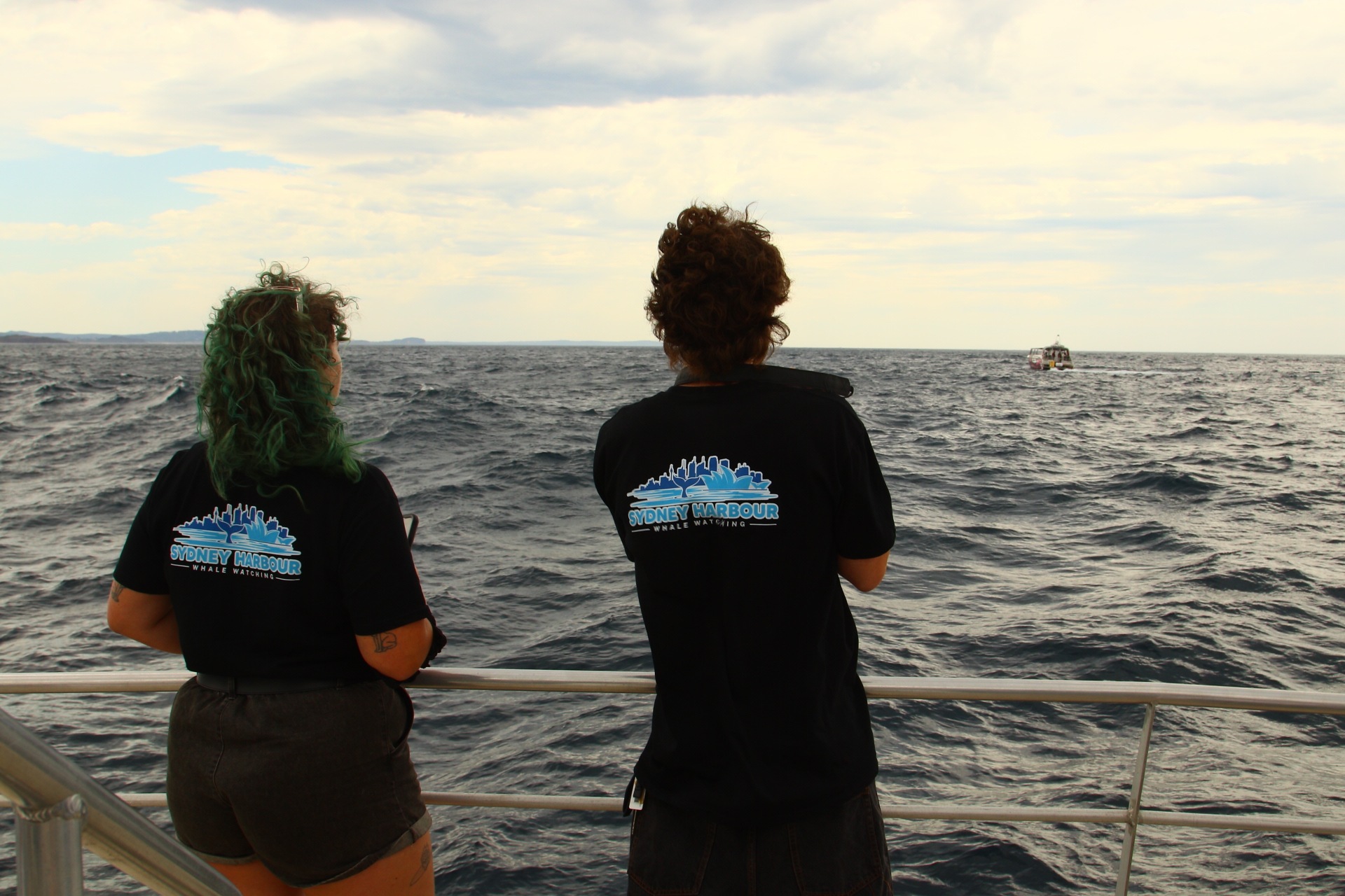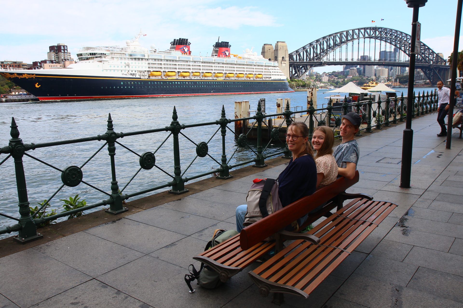 Vroeg op: walvissen kijken. Naar Circular Quay, de haven waar de boot vertrekt. Het was een iets kleiner bootje dan verwacht, zal wel een rocky ride worden. En inderdaad. Eenmaal de rivier uit, na een half uur varen, gaat ie op volle zee flink op en neer: rollen, stampen en gieren tegelijk. A+A worden een beetje misselijk.