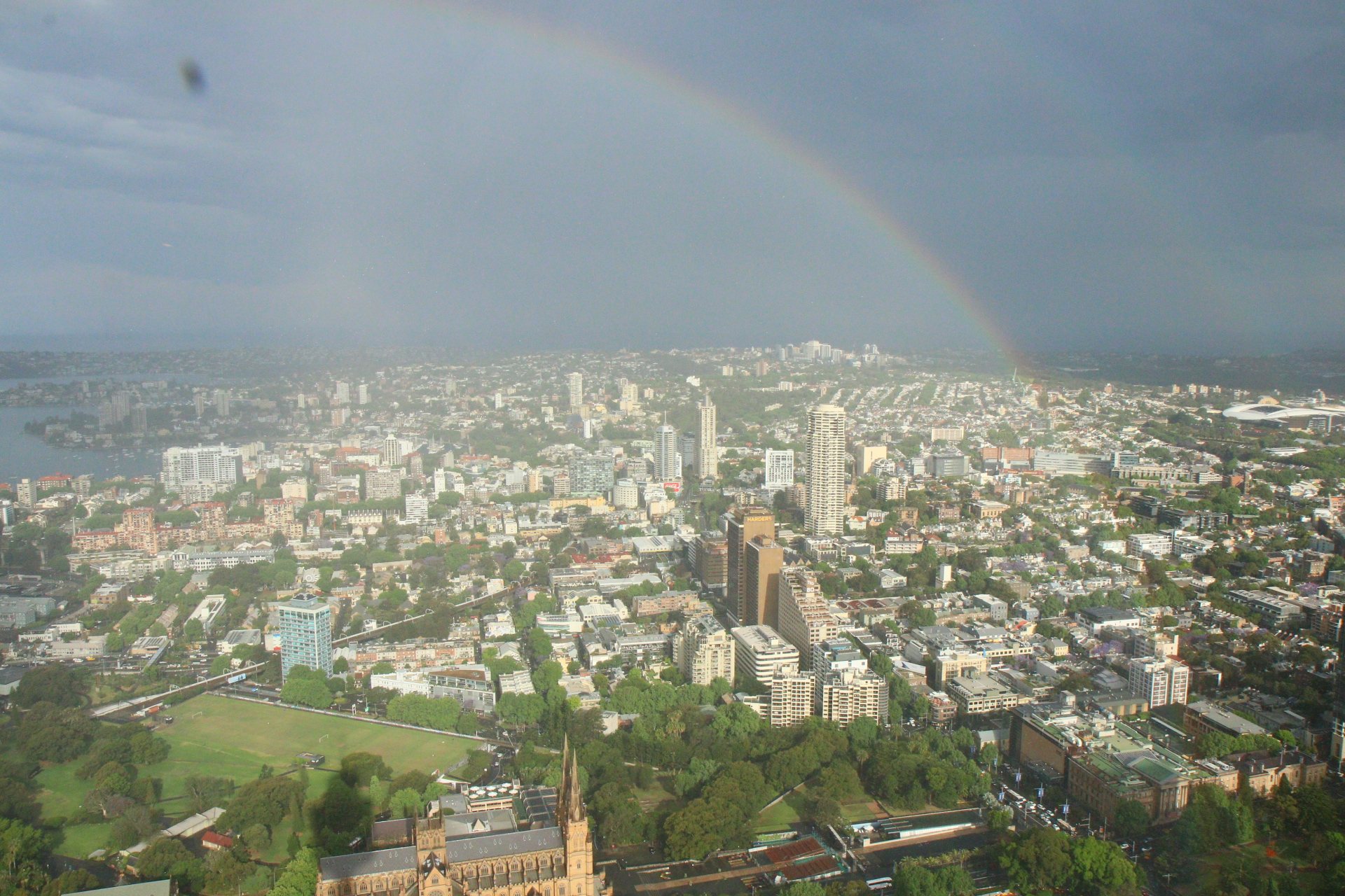De toren is 309 m, iets hoger dan Eiffeltoren. Het observatiedeck is dicht, achter glas. We konden nog net een half uurtje rondkijken, voor het begon te regenen, zoals voorspeld. Dat was trouwens voor het eerst overdag deze vakantie. Vanaf de Toren zag je een regenboog, nee een dubbele regenboog, en Carmen zag zelfs een 360 graden regenboog!