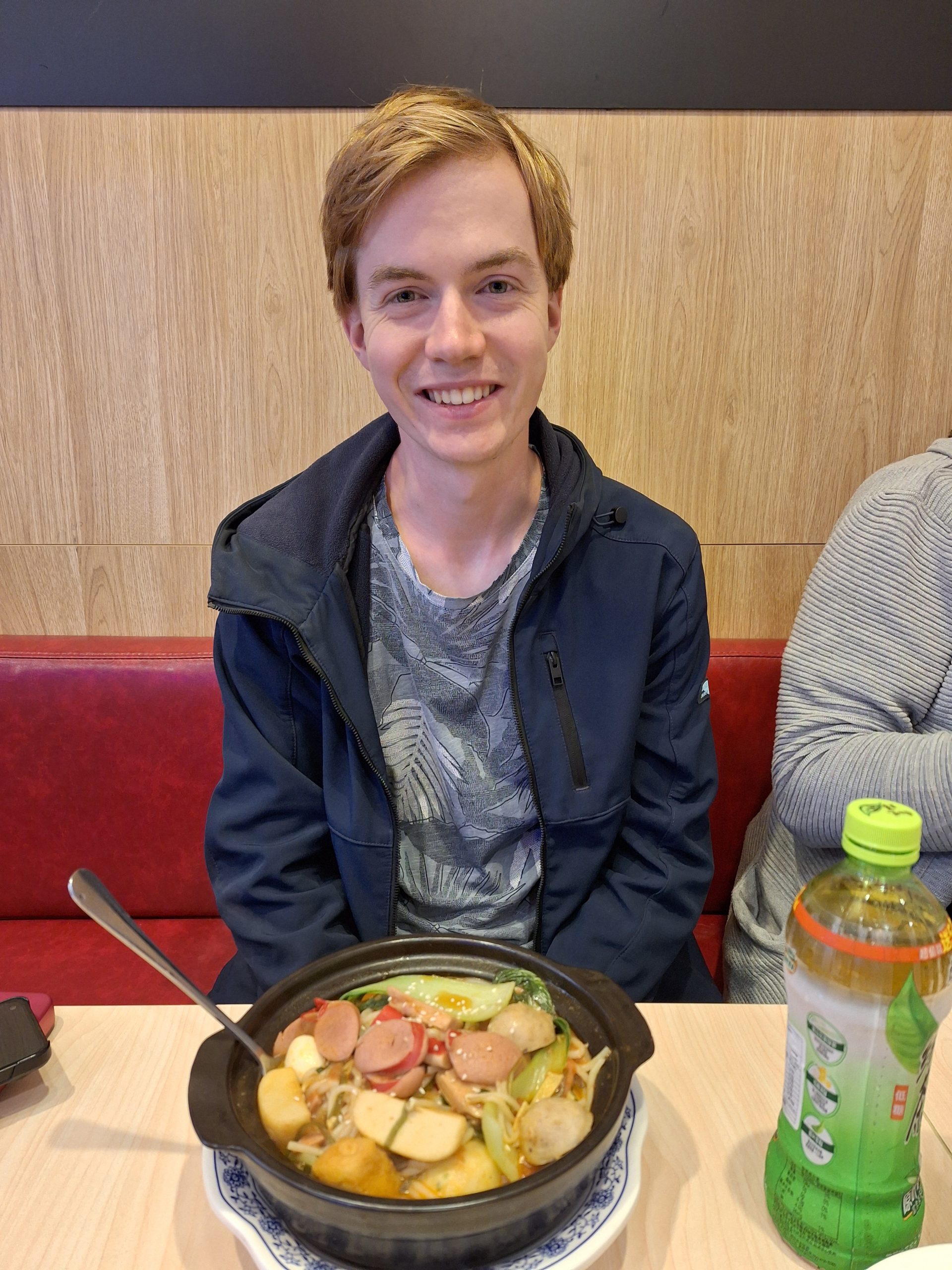 Van een paar dingen moesten we even opzoeken wat het was. Zoals de lotuswortel (met de gaatjes erin, smaakt een beetje naar aardappel) en Arthur’s deegbal met visse-eitjes erin. Hij had heel veel rare worst in de soep, vond ie niet zo lekker. Carmen en Lars hadden samen een drypot, was heel lekker. Adinda had een noedelgerecht. Was uitdagend met gladde plastic stokjes. Toen kwam de serveerster toch maar met een vork aan. Dat hielp.