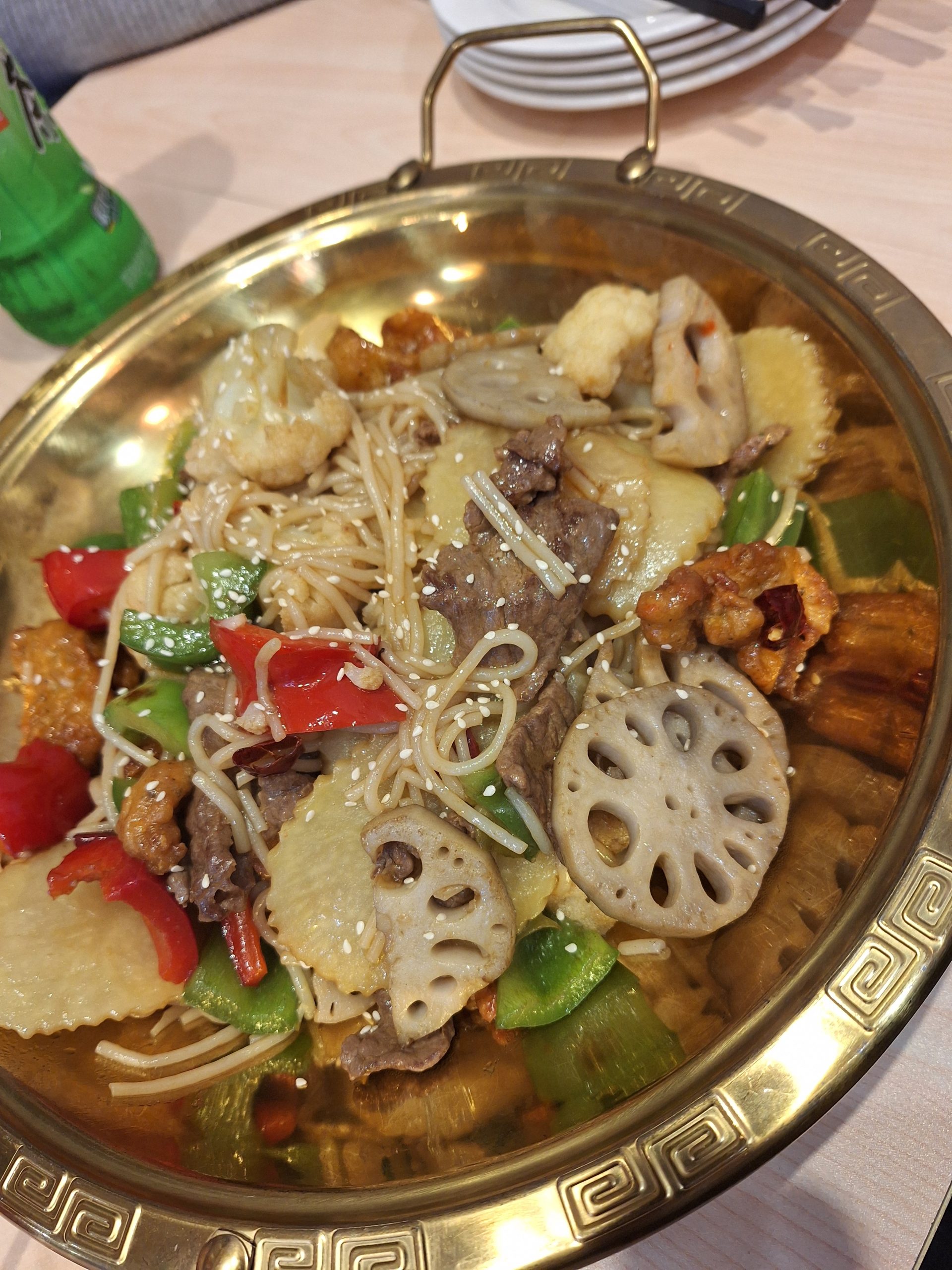 Eten: hotpot, bij een Chinees om we hoek. Haha, alles om de hoek is Chinees. Of Koreaans. Ze hadden van alles, hotpot, drypot en allerlei noedels en dumplings. De bullfrog en de fried brain sloegen we even over, maar genoeg ander lekkers op de kaart.