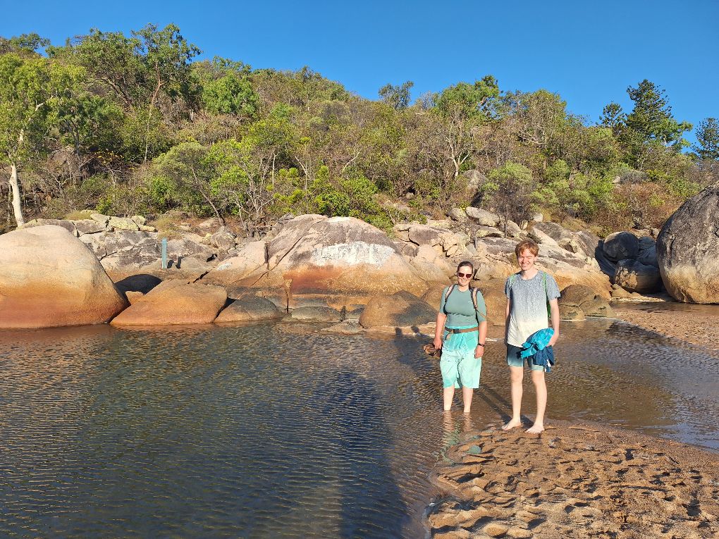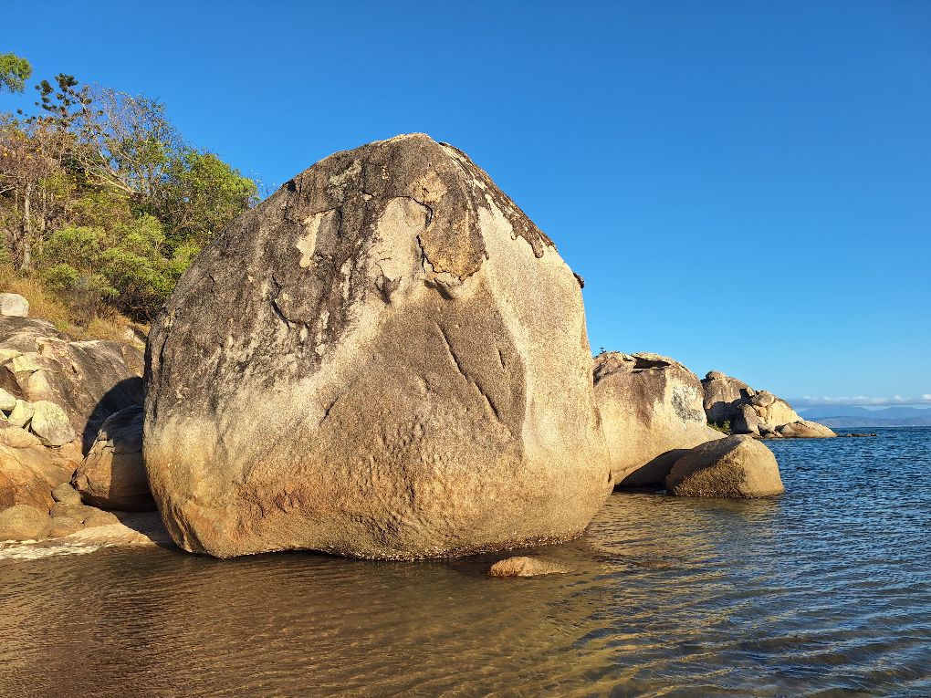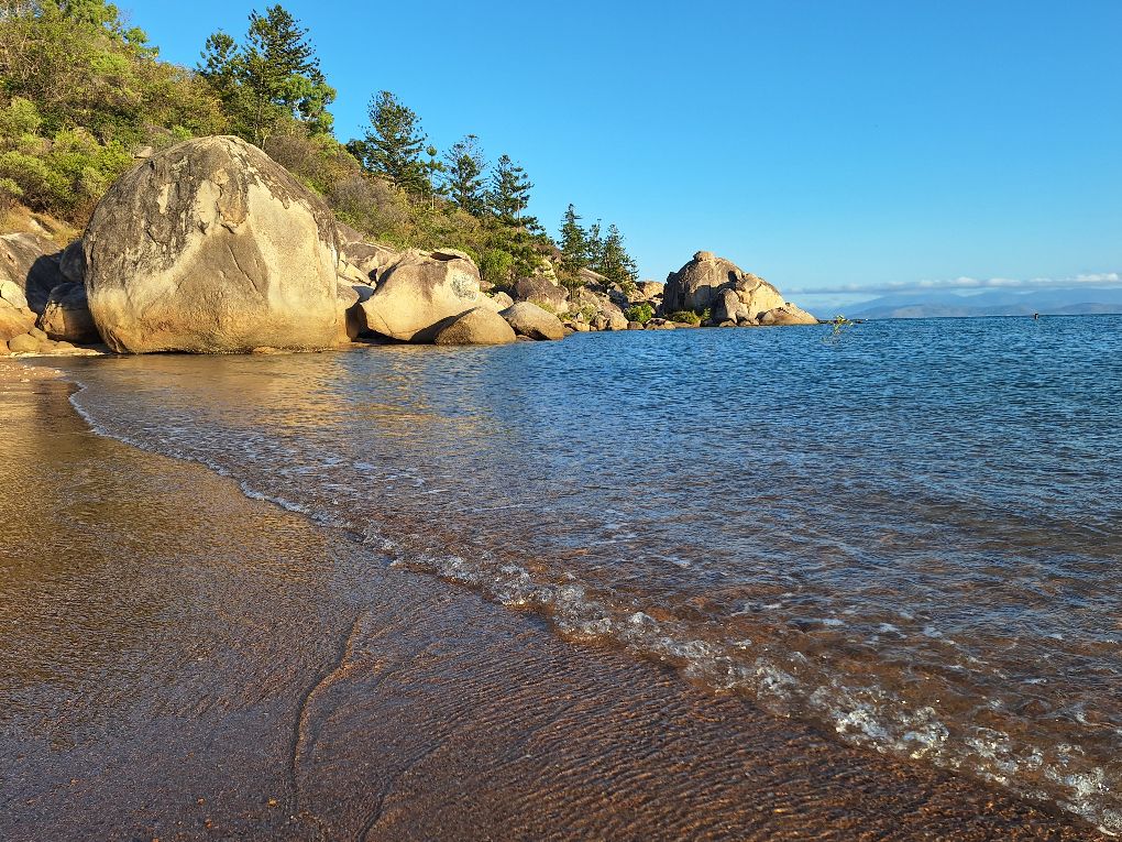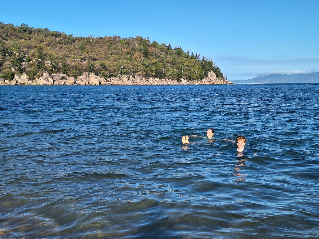 Vergeten ontbijtspul in te slaan, dus boodschappen doen. Dit dorpje heeft geen supermarkt, dus met de bus naar Nelly Bay, het buurdorpje.
