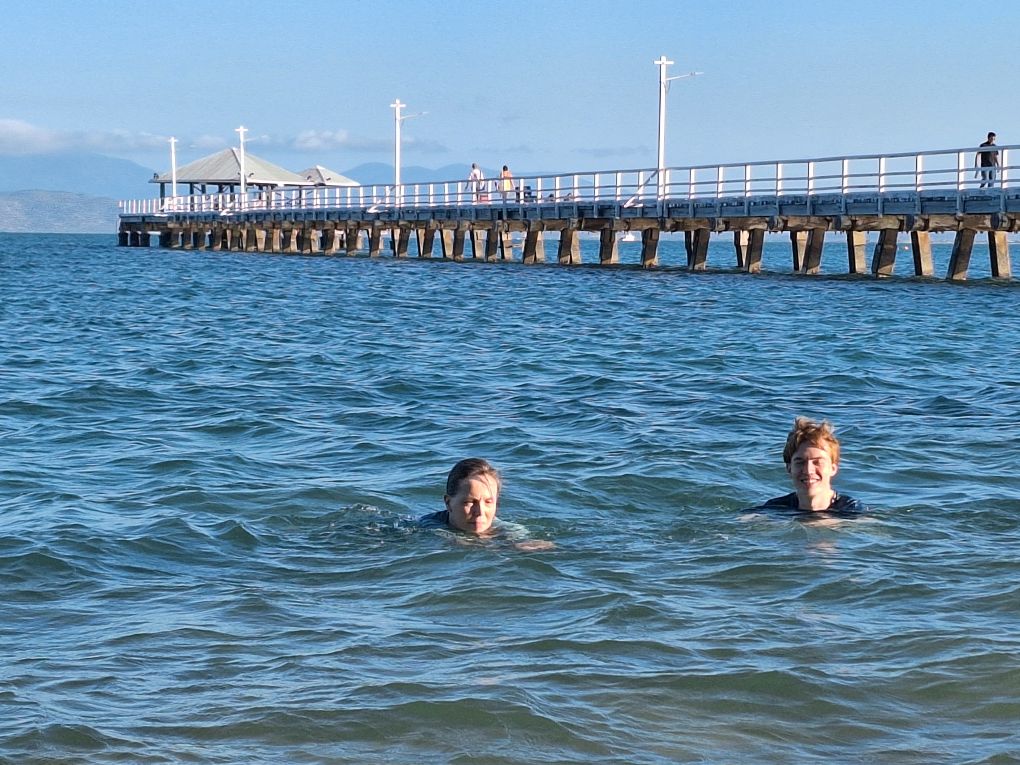 ’s Middags gezwommen in zee, die 100m van ons huisje af ligt. Voor het strand ligt een pad met hele mooie mangrovebomen. De wortels groeien van boven naar beneden.